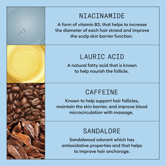 - Caffeine: An antioxidant that helps to leave hair feeling invigorated