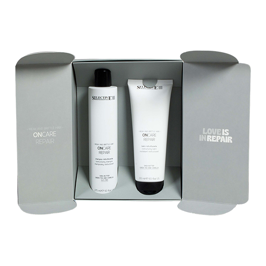 The on care repair range is formulated to repair damage, strengthen, nourish and moisturise the hair. The repairing formula includes green tea and cameilla. This combination of natural ingredients will provide hydration, brightness, and smoothness to help prevent split ends.